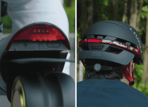 With the bright LED rear light, you'll never go unnoticed. It lights up when you brake and signals left or right when you turn, seamlessly syncing with LIVALL smart helmets for added visibility and safety.