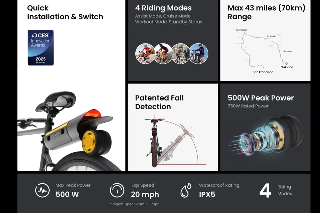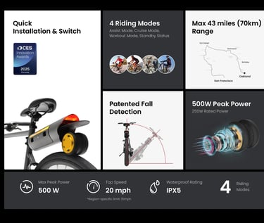 Switch easily between e-bike and bike without the hassle of removing the unit! Simply click the standby button on the app when you don’t need assistance. Go electric or go manual—it's all up to you.